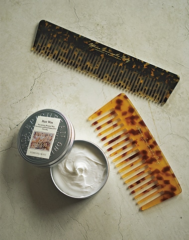 洗面台にバラバラに並ぶスタイリング剤も、アレンジ自在なナチュラルなワックスがひとつあればスマート。ヘアスタイルに関係なく、彼はきっちり、私は毛先だけ、など使い方で何通りにも。慌ただしい朝の支度も、一緒にできちゃう。