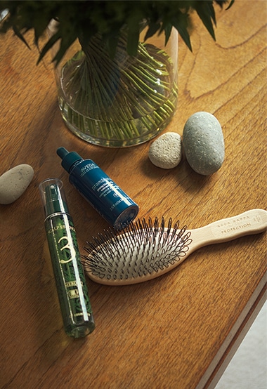 頭皮は、ストレスで赤くなったり、かゆくなったりしがち。男女問わず抜け毛対策は、まず頭皮環境を整えることから。シャンプー前に優しくブラッシングしたり、シャンプー後に地肌用エッセンスで常在菌バランスを整えたり。ボタニカルの力で、健やかな髪が生まれることを期待して。