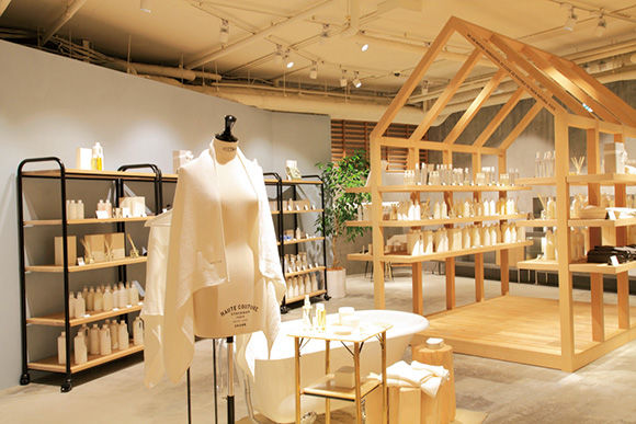 自然派コスメブランドの、カフェ併設新ショップ。