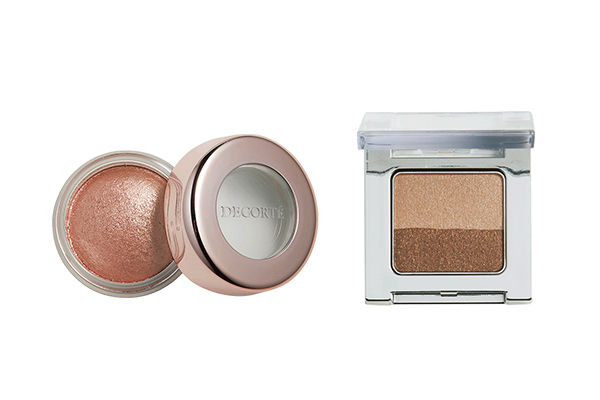 左:肌色や血色感と調和しながら自然な陰影を描くベージュの濃淡。デザイニング アイシェード 22 ¥2,376/イプサ