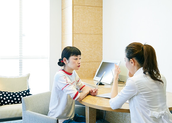 気になるシミだけでなく肌全体を診察し、治療法を決めるカウンセリング。