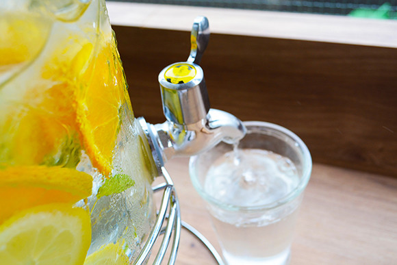 水分補給のデトックスウォーターや白湯は、いつでも好きなだけ。