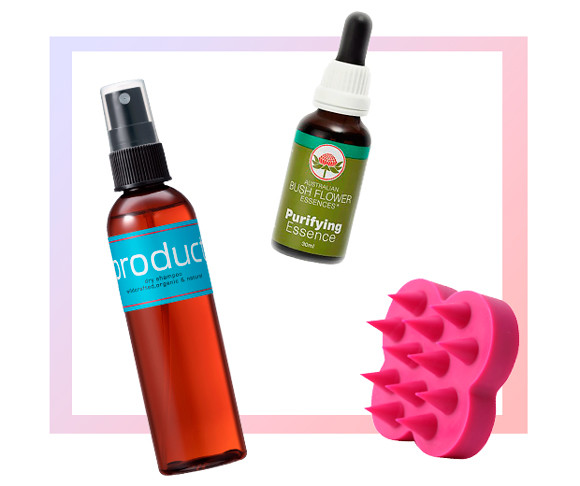 左:USDAオーガニック認証の安全性で、肌に爽快感をもたらす。プロダクト ドライシャンプー 115㎖ ¥1,620/ココバイ 中:植物の力でネガティブなエネルギーから解放。オーストラリアン・ブッシュ フラワーエッセンス ピュリファイング 30㎖ ¥3,564/ネイチャーワールド 右:サロンのヘッドスパのような爽快感を手軽に。インバス使用に適した、滑りにくく持ちやすい設計のシリコン製ブラシ。スカルプブラシ ケンザン ソフト ¥1,944/ウカトーキョーヘッドオフィス