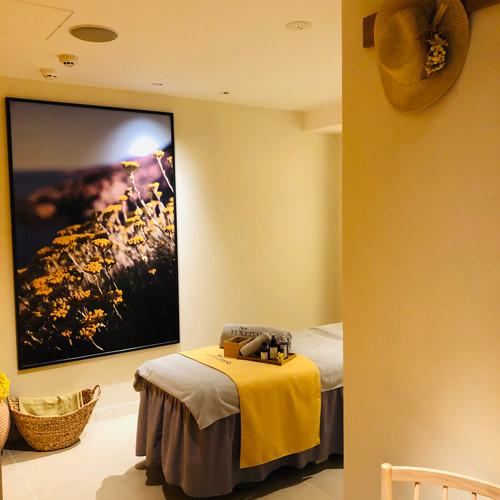 スパのウェイティングスペースでは、南仏を想起させるさまざまな書籍や雑貨、写真などが飾られています。眺めているだけでフレンチスタイルのヴァカンス気分。