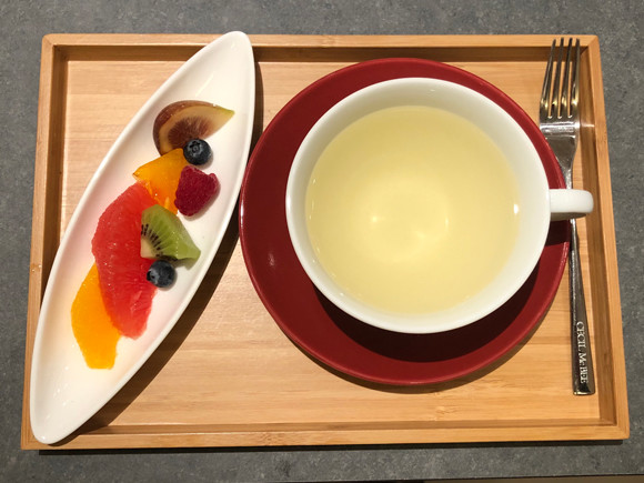 施術後、ハーブティーと季節のフルーツをのんびりいただきました。こんなサーブができるのは1階に「ヴァーベナカフェ」と名付けられたカフェスパースがあるからなのです。パフェや、レモネードなど、女子好きするメニュー、インスタ映えする色彩豊かなデザートやドリンクが豊富なのでぜひ。
