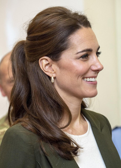 シニョンスタイルが得意なキャサリン妃だが、ポニーテールもお気に入りのよう。2014年頃から、ラフな印象でもエレガンスは失わないこのシンプルなヘアスタイルはキャサリン妃のマイブームに。また、中くらいの位置でまとめた、よりアクティブなムードのハーフアップも取り入れて、ヘアアレンジのバリエーションにいまの気分をプラスしている。キャサリン妃のヘアスタイルのレベルの高さは、まさに女王と呼ぶにふさわしい!