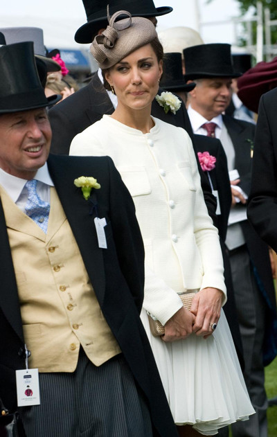 男性がみんなシルクハットをかぶる日は、キャサリン妃もファシネーターで。(イギリス・エプソム、2011年6月4日)photo : Getty Images