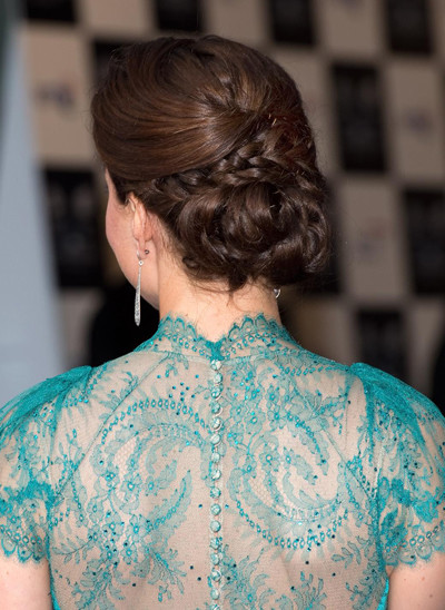 華やかな場では三つ編みシニョン。(イギリス・ロンドン、2012年5月10日)photo : Getty Images