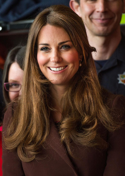 ぴったりと押さえた前髪に、さらさらのロングヘア。70年代風ヘアスタイルが引き続きマイブームのキャサリン妃。(イギリス・グリムズビー、2013年3月5日)photo : Getty Images