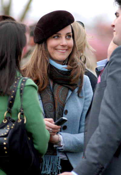 ウィリアム王子との交際が公になり、ベレーやファシネーターで癖のある前髪を隠すことを覚えたケイト。(イギリス・チェルトナム、2007年3月16日)photo : Getty Images