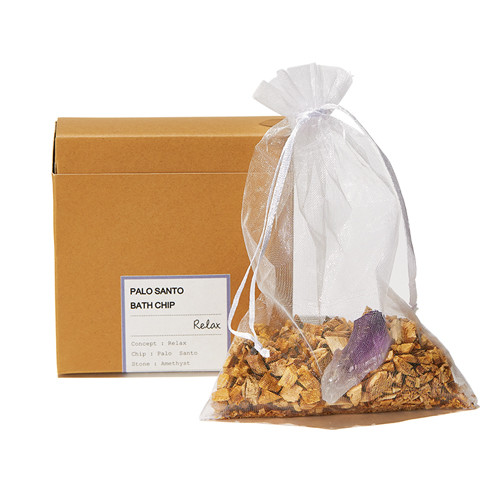 使用後は袋ごと干し、繰り返し2週間ほど使える。フォートメント パロサントバスチップ リラックスアメジスト¥2,420/ビープル バイ コスメキッチン