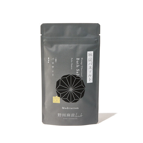 パロサントの精油とヒマラヤンピンクソルト、国産麻炭の最強ミックス。野州麻炭ラボ 麻炭バスソルト 80g ¥998/ビープル バイ コスメキッチン