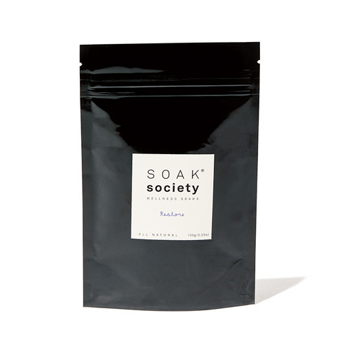 エプソムソルトとクレイ、精油が筋肉疲労を解消。デジタルデトックス効果も。ソークソサエティ バスソーク リストア 100g ¥1,430/リグルジャパン