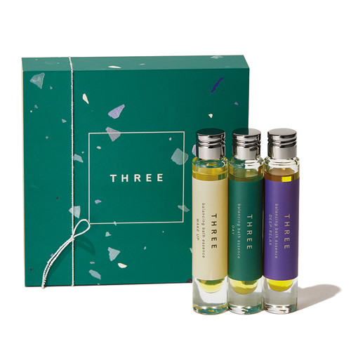 目覚め、リフレッシュ、リラックスとシーンに合わせて香りを選んで。バランシング ビラブド バスエッセンス 7.5ml×3本 ¥6,600(限定パッケージ)/スリー