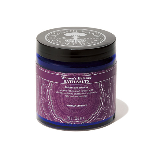 ミネラル豊富な海塩にローズやパチョリを配合。ウーマンズバランス バスソルト 350g ¥4,400(11/25限定発売)/ニールズヤード レメディーズ
