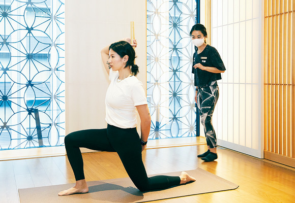 ボディリメイクは、関節の可動域や柔軟性、筋肉のバランスなど13項目のチェックからスタート。その人の身体に合わせ呼吸にフォーカスしたパーソナルトレーニングを組み立てる。