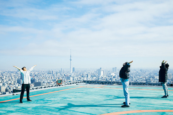 地上約160mのビルの屋上で行う天空深呼吸は、宿泊者なら全員参加可能なアクティビティ。朝日を浴びて、澄んだ空気を吸い込む爽快感!「 充実のプログラムで、2泊3日もあっという間」(惣流)