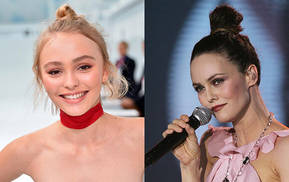 2000年代終わりから2010年代初頭において象徴的なヘアスタイルであるこのお団子ヘアは、2008年3月のヴィクトワール音楽賞でヴァネッサ・パラディも惹きつけた。2015年10月のシャネルの2016年春夏コレクションショーでの娘も同様だ。photos:Abaca/Getty Images