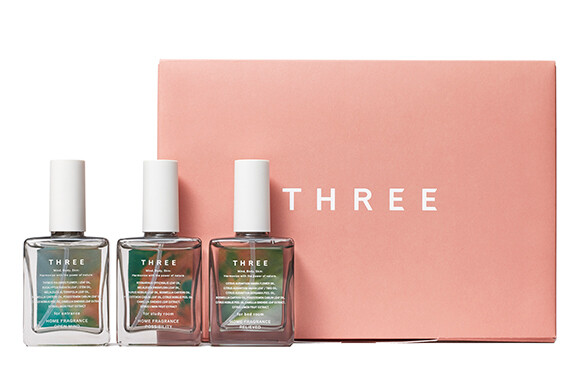 天然精油100%の香りで、空間に合わせてマインドをリセット。心がオープンになる爽やかな香り、集中力を高める爽快な香り、一日の終わりにいい眠りへと誘う柔らかな香りの3種類で、呼吸がスーッと深くなる。透明感のあるボトルもインテリアの一部として素敵。