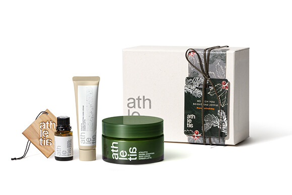 ホリデーシーズンを思わせる、心温まるジンジャーラテの香りのボディクリームやハンドクリーム、心と身体を調和させるアロマオイルや、香りと一緒に楽しめるアスレティアオリジナル曲も。●¥12,650(10/29限定発売)