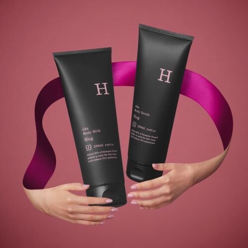 左: ウカ ボディミルク ハグ 250ml ¥4,400 右: ウカ ボディスクラブ ハグ 250ml ¥5,500/ともにウカトーキョーヘッドオフィス