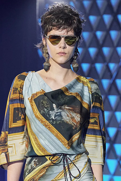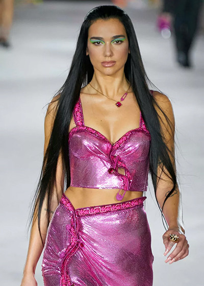 ヴェルサーチェ 2022年春夏コレクション、リキッドヘア風ウルトラロングヘア。