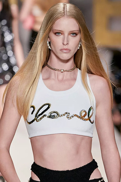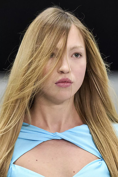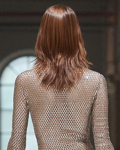 シャネル 2022年春夏コレクション、リキッドヘア風ロングヘア。