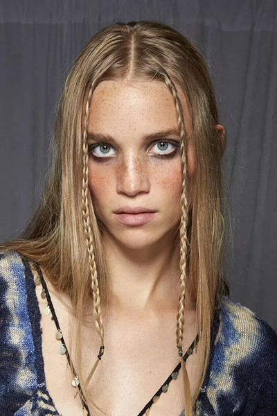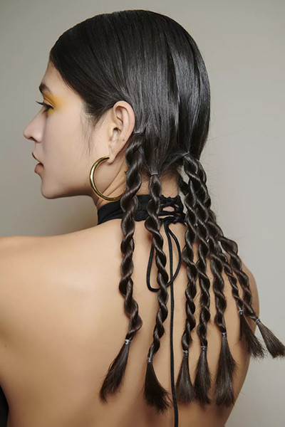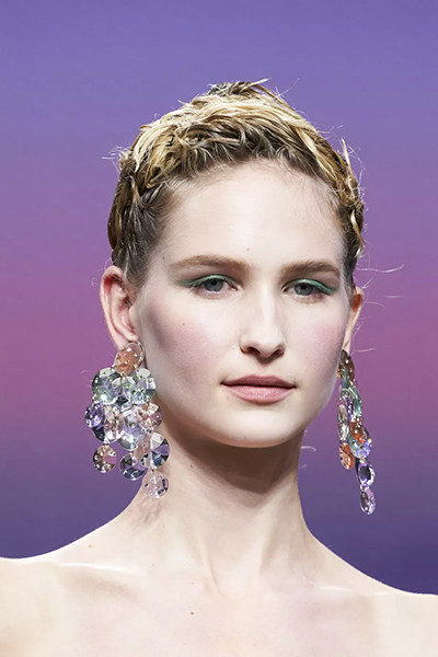 クレージュ 2022年春夏コレクション、ミニブレイズ(細い三つ編み)をアレンジ。