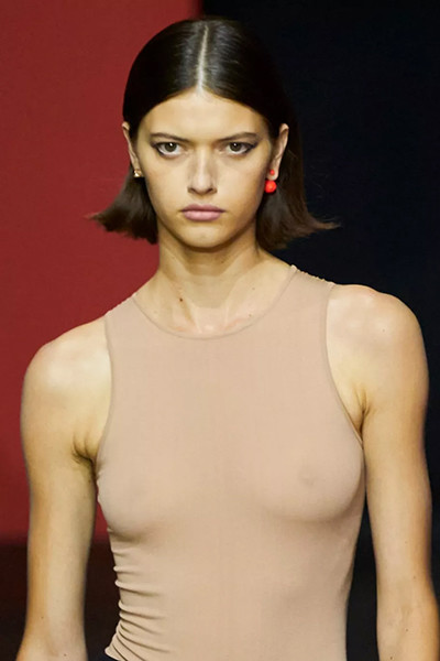 ロエベ 2022年春夏コレクション、ブラントショートボブ。