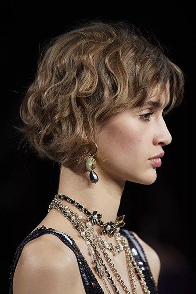 シャネル 2022-2023年秋冬コレクション、ウェービーショートボブ。