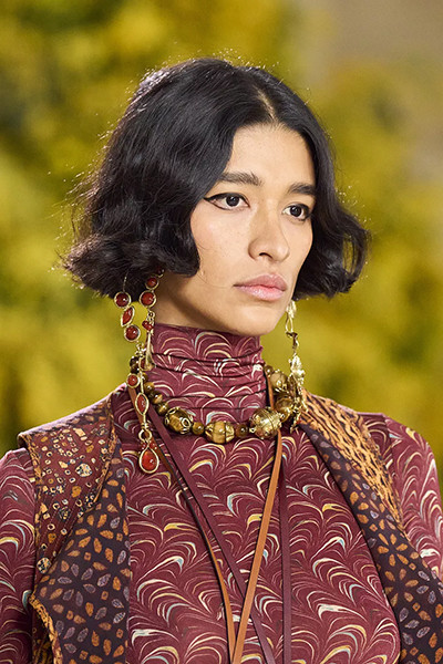 エルメス 2022年春夏コレクション、「ボッティチェリ」風ウェーブヘア。