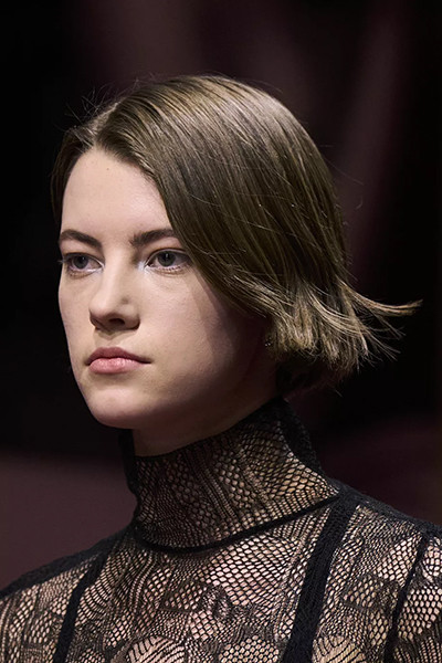 ディオール 2022-2023年秋冬コレクション、アシンメトリーボブ。