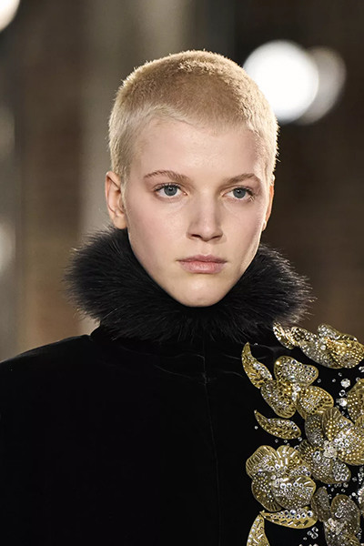 アレクサンドル・ボーティエ 2022年春夏オートクチュール・コレクション、プラチナブロンドのピクシーカット。