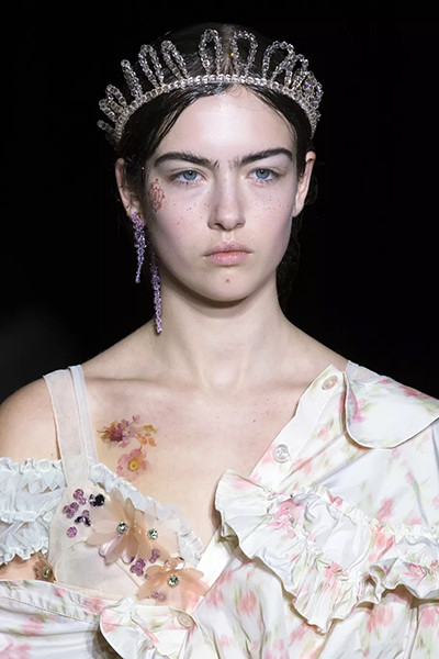 シモーン・ロシャ 2022年春夏コレクション、プリンセスクラウンのヘアアクセ。