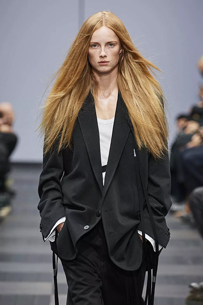 リック・オウエンス 2022-2023年秋冬コレクション、ウルトラスリークなマレットカット。