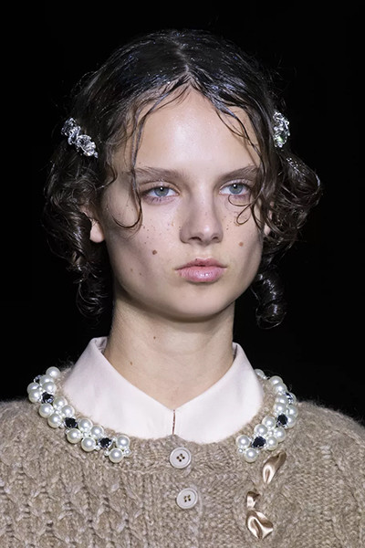 アン ドゥムルメステール 2022-2023年秋冬コレクション、「ボッティチェリ」風ウェーブヘア。