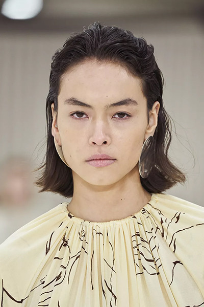 ロエベ 2022年春夏コレクション、アシンメトリーボブ。