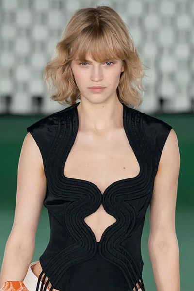 ジバンシィ 2022-2023年秋冬コレクション、70年代風前髪。