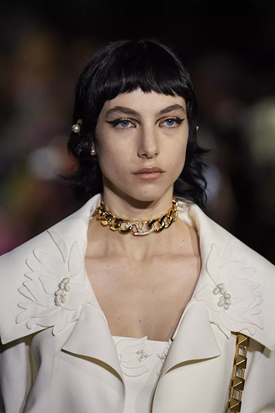 ヴァレンティノ 2022年春夏コレクション、ベビーバングのマレットカット。
