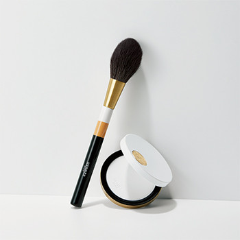 「肌の『格』が上がる、まるで魔法!」(松本千登世)。ほんのり色づく光のヴェールをヤギ毛のブラシで軽やかにオン。マットに整え、仕立てのよい肌に。右から、エルメス プラン エア プードル エクラ マット ¥11,990、同 パンソー プードル ¥14,630/ともにエルメス(エルメスジャポン)