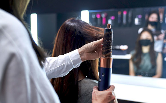 ダイソン ヘアケア コンサルテーションでは、約30分かけて、自身の髪質やなりたいヘアスタイルに合わせて、ヘアスタイリストのアドバイスを受けながらダイソンヘアケア製品をお試しできる。