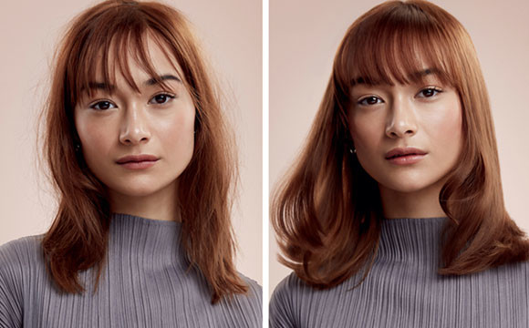 ヘアスタイルのビフォー/アフターを撮影できるフォトサービス。自分では気づきにくい後ろ姿の撮影など、ダイソンのヘアケア製品を使ったスタイリングの違いを、正面・後ろからも確認できる。
