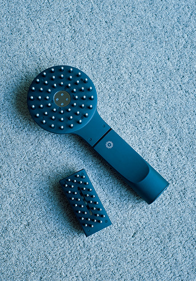 低周波の刺激でコリをほぐすブラシ型美容機器。アタッチメントを付け替えて、頭皮や顔、首周りだけでなく、全身たるみケア。専用ローション付き。デンキバリブラシ® 2.0+ボディ ¥217,800/GMコーポレーション