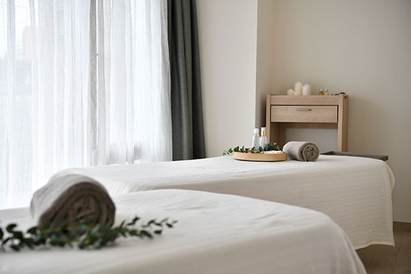 大浴場のほか、温浴とトリートメント用ベッドを置いた会員制の個室も。