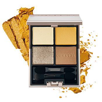 マルメロの果実にインスパイアされたソフトマットなイエローをまぶたにふんわりのせて、カーキの煌めきでピリリとしたコントラストを。今秋、注目のカラーパレットをひと足早く。ルナソル アイカラーレーション EX24 ¥6,820(7/15限定発売)/カネボウ化粧品
