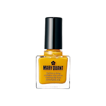 オリーブ、ローズヒップ、ホホバの3種のオイル配合で保湿効果を高め、速乾性、持続性にすぐれたネイルシリーズに一新。52色の中から、シアーな発色のマスタードイエローをチョイス。ネイル ポリッシュ036 ¥1,650(8/5発売)/マリークヮント コスメチックス