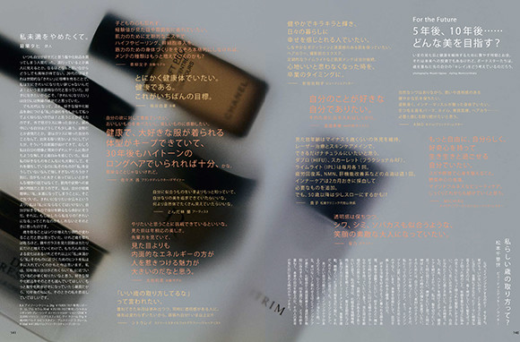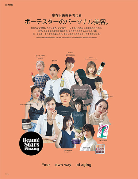 フィガロジャポン11月号のビューティ特集「現在(いま)と未来を考える ボーテスターのパーソナル美容。」では、ビューティアンバサダーであるボーテスターたちのそれぞれのケアについてフォーカス。美容医療を適度に取り入れつつ、運動やインナーケアも欠かさない姿勢が伺える。
