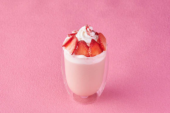 ミルクティー味のプロテインにホットミルクとストロベリーシロップ、ホワイトチョコレートソースを合わせ、トップにたっぷりのイチゴとホイップクリームをデコレーション。こちらはテイクアウトも可能。“ラ プロテイン ミルクティー”のホット ストロベリー ミルクティー ¥860 ※サービス料15%別(テイクアウト ¥800)