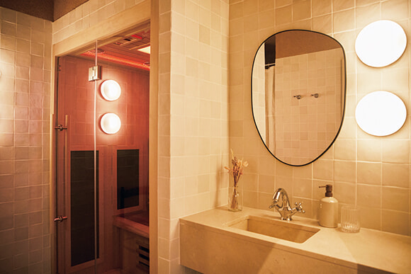 温浴施設といえば、モロッコ式のハマムが親しまれてきたパリに、カフェを併設した個室サウナ、ベレームが登場。慢性的な偏頭痛に悩んでいたオーナーは、血液循環を促して免疫力を高める遠赤外線サウナに辿り着いたという。ドライサウナよりも低温で身体が温まり、脂肪燃焼や肌を再生するなどの美容効果も高い。ここでは、友人とともにサウナを楽しんだ後、ヘルシードリンクを片手に併設のカフェで過ごすのが、パリジェンヌのサ活スタイル。