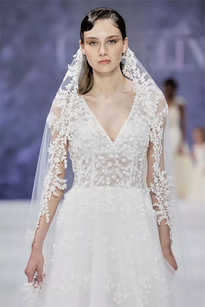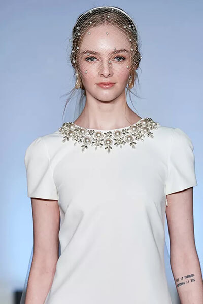 ゆるやかに束ねたシニヨンにヴォワレット。(サッチン&バビ2023年春夏コレクション)photography: Imaxtree